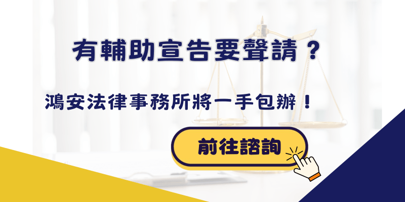 如果您或您的家人正在考慮聲請輔助宣告,或已面臨相關的法律問題,鴻安法律事務所將成為您最值得信賴的夥伴,幫助您妥善應對各種法律挑戰,確保受輔助宣告人的最佳利益。