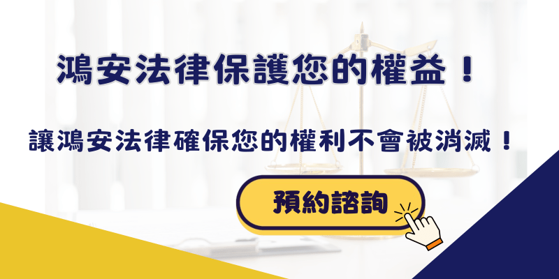 若您對消滅時效相關的法律問題感到困惑,或在行使權利時擔心時效的影響,鴻安法律事務所將是您值得信賴的法律顧問。我們的專業團隊具備豐富的經驗,能夠提供個性化的法律建議,幫助您掌握時效規定並避免不必要的權益損失。無論是訴訟前的法律諮詢還是實際的法律行動,我們都致力於為您爭取最大化的權益,讓您的權利不因時間而消失。立即聯繫鴻安法律事務所,讓專業律師為您保駕護航!